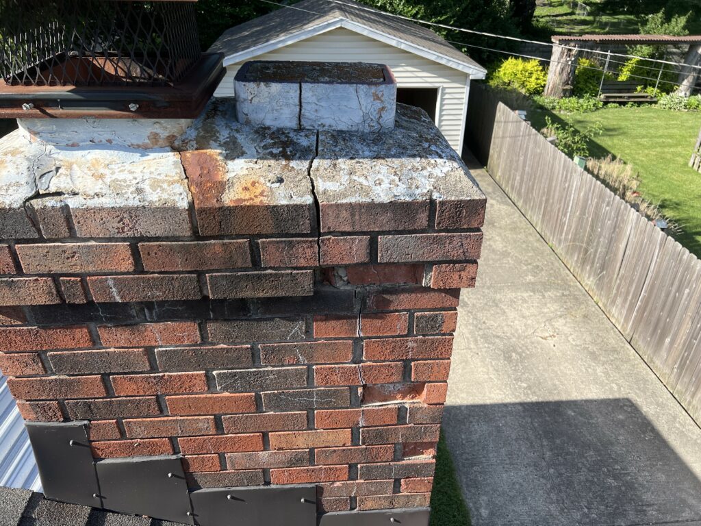 Some things you see defy logic !This chimney is one of them, constructed out of heavy brick on a wooden plinth: it’s just not done. If you were going to do this the wood framing would need to be so much stronger and bolted together: but it’s not.